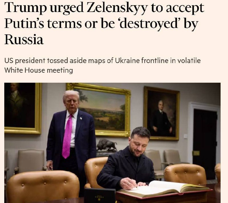 به گزارش فایننشال تایمز، "در طول دیدار ترامپ و زلنسکی، رئیس