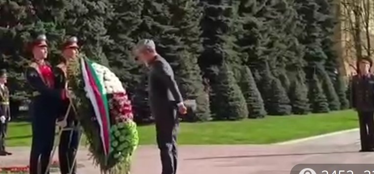 به مزار سرباز گمنام در مسکو رفت و تاج گلی نثار کرد. این بنا