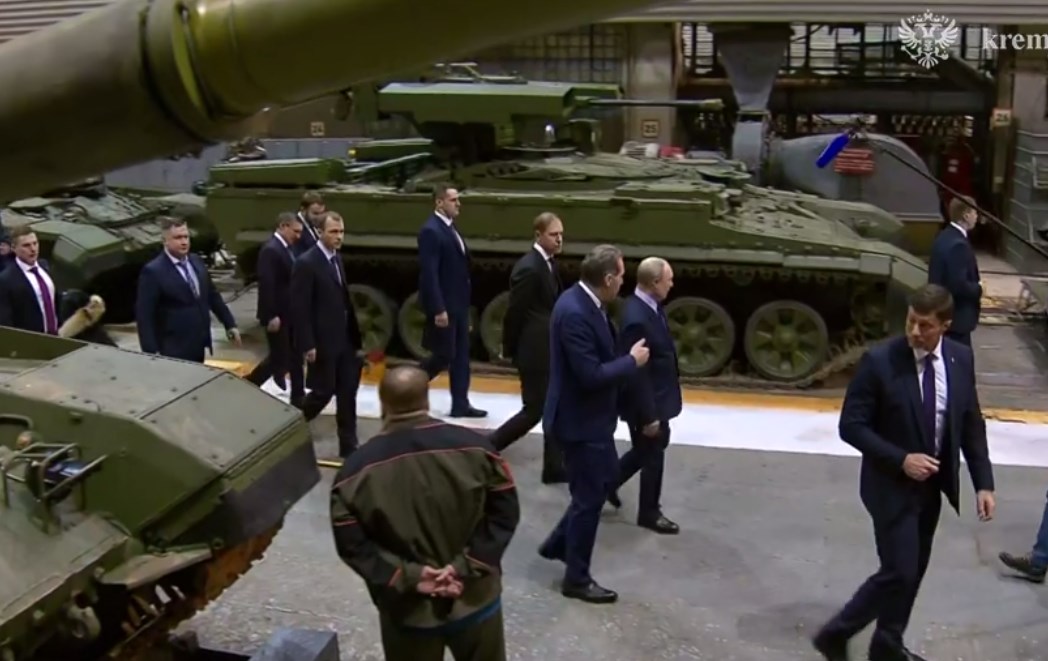 پوتین هنگام بازدید از کارخانه تولید تانک های جدید در پاسخ به
