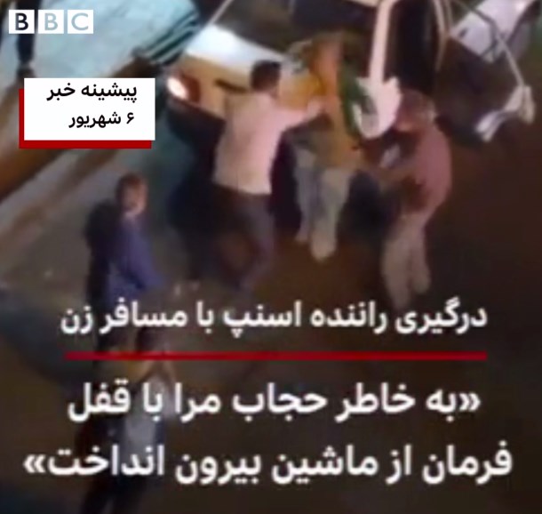 درگیری راننده یک اسنپ با مسافر زنی است که روسری نداشته است.