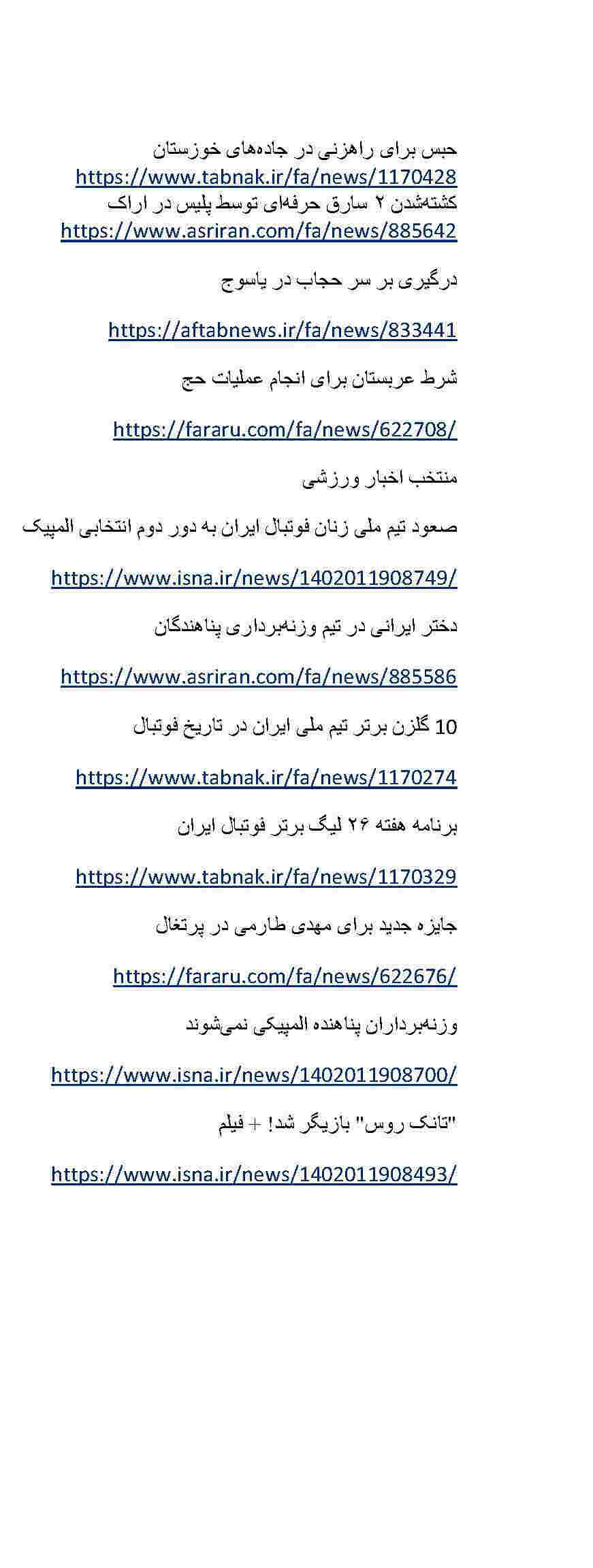 منتخب اخبار شهرستان و ورزشی