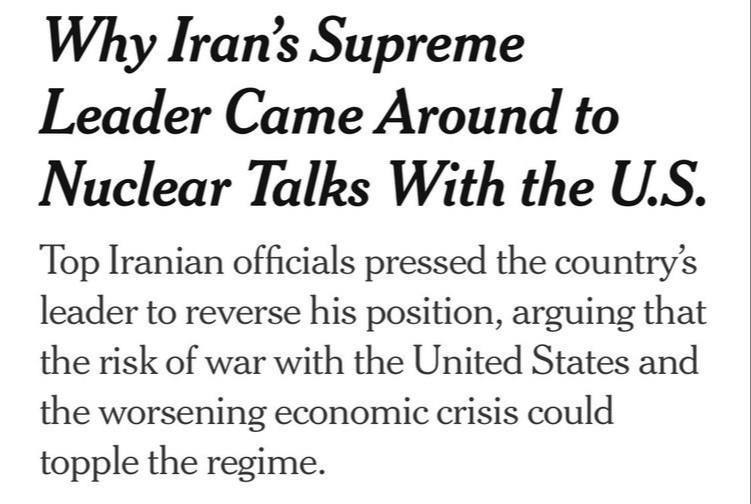 در کشاکش اخبار با امریکا مذاکره می کنیم و مذاکره نمی کنیم، ترامپ باید غرامت حمله به ایران را که خود بدان اعتراف کرده بدهد، تکذیب ها گاه ملایم و گاه سفت و سخت عراقچی درباره دور تازه مذاکرات با امریکا، اخباری که از عراق به ایران منتقل شده و در آن از تهدیدهای امریکا یاد شده، خبر پیام محرمانه امریکا به ایران که گفته می شود آخرین سخنرانی رهبر جمهوری اسلامی پاسخ آن پیام بود، ناگهان دیروز "نیویورک‌ تایمز" مدعی کسب یک خبر عجیب شد.(البته اگر عوامل اسرائیل جعل خبر درست نکرده باشند). به موجب این خبر نیویورک تایمز گویا پزشکیان و قالیباف در یک جلسه چند ساعته آیت الله خامنه‌ای را برای مذاکره با ترامپ قانع کرده اند. در این خبر اضافه شده که  شورایی با حضور کمال خرازی و علی لاریجانی و محمد فروزنده (از فرماندهان با سابقه سپاه و عضو کنونی مجمع تشخیص مصلحت نظام) برای مدیریت مذاکرات در سه عرصه سیاست خارجی، استراتژی و نظامی تشکیل شده است.